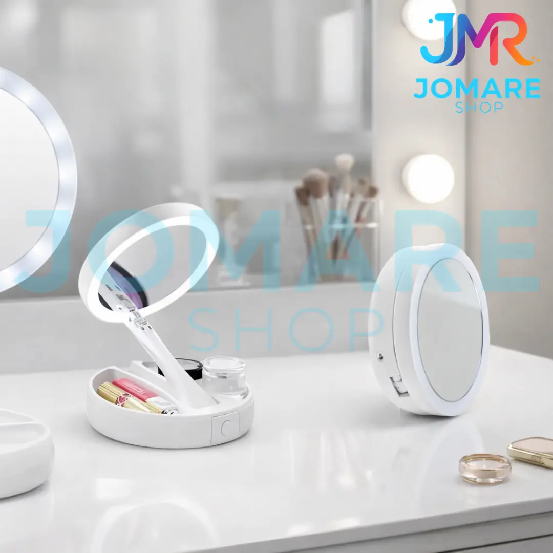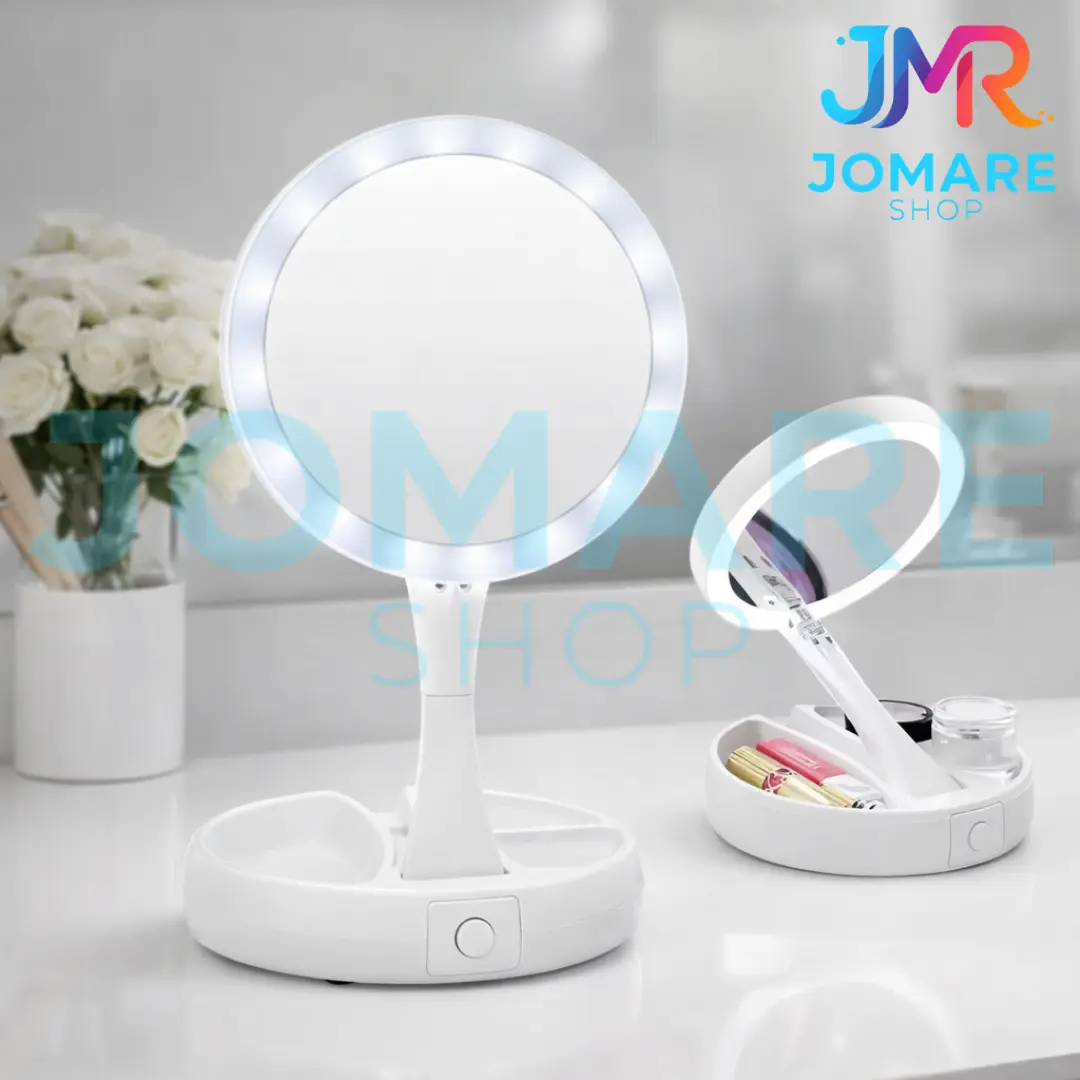 Espejo redondo con luz LED integrada, ideal para maquillaje y cuidado personal. Fabricado en vidrio de alta calidad que ofrece una imagen nítida y sin distorsión. Su diseño flexible permite ajustar el ángulo fácilmente para mayor comodidad. Incluye espejo con aumento giratorio para mayor precisión, organizador integrado para accesorios y estructura extensible de hasta 28 cm de altura. Plegable, liviano y compacto, ideal para el hogar o para llevar de viaje.
