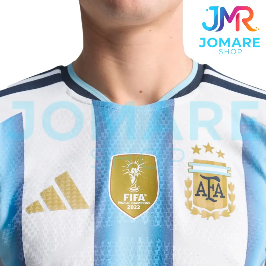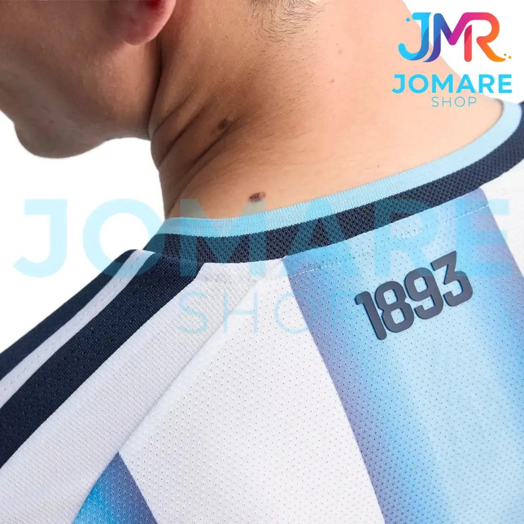 - Incluye las icónicas franjas celestes y blancas con degradado característico de la edición 2026