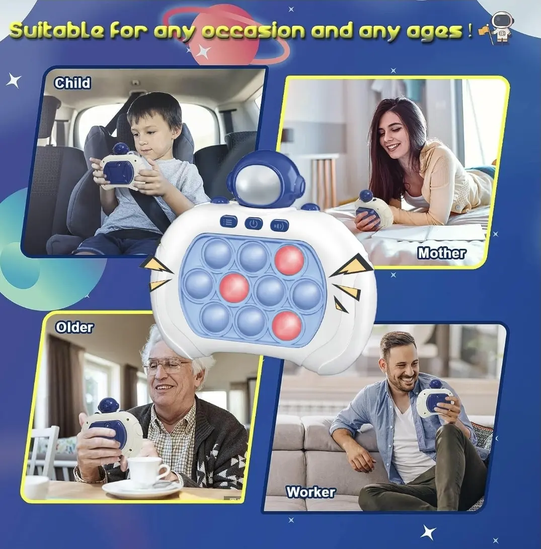 La Consola Sensorial Pop It Electrónica Labubu reinventa el clásico juego antiestrés con una propuesta totalmente interactiva. Combina luces LED, sonidos musicales y múltiples niveles de velocidad que convierten cada partida en un desafío divertido y estimulante. Ideal para pequeños, jóvenes y adultos que quieren entrenar reflejos, memoria y coordinación mientras disfrutan de una experiencia sensorial atrapante.