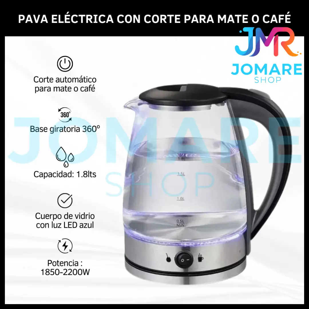 Con un diseño moderno y transparente, esta pava te permite ver el proceso de ebullición mientras calienta el agua de forma rápida y eficiente.