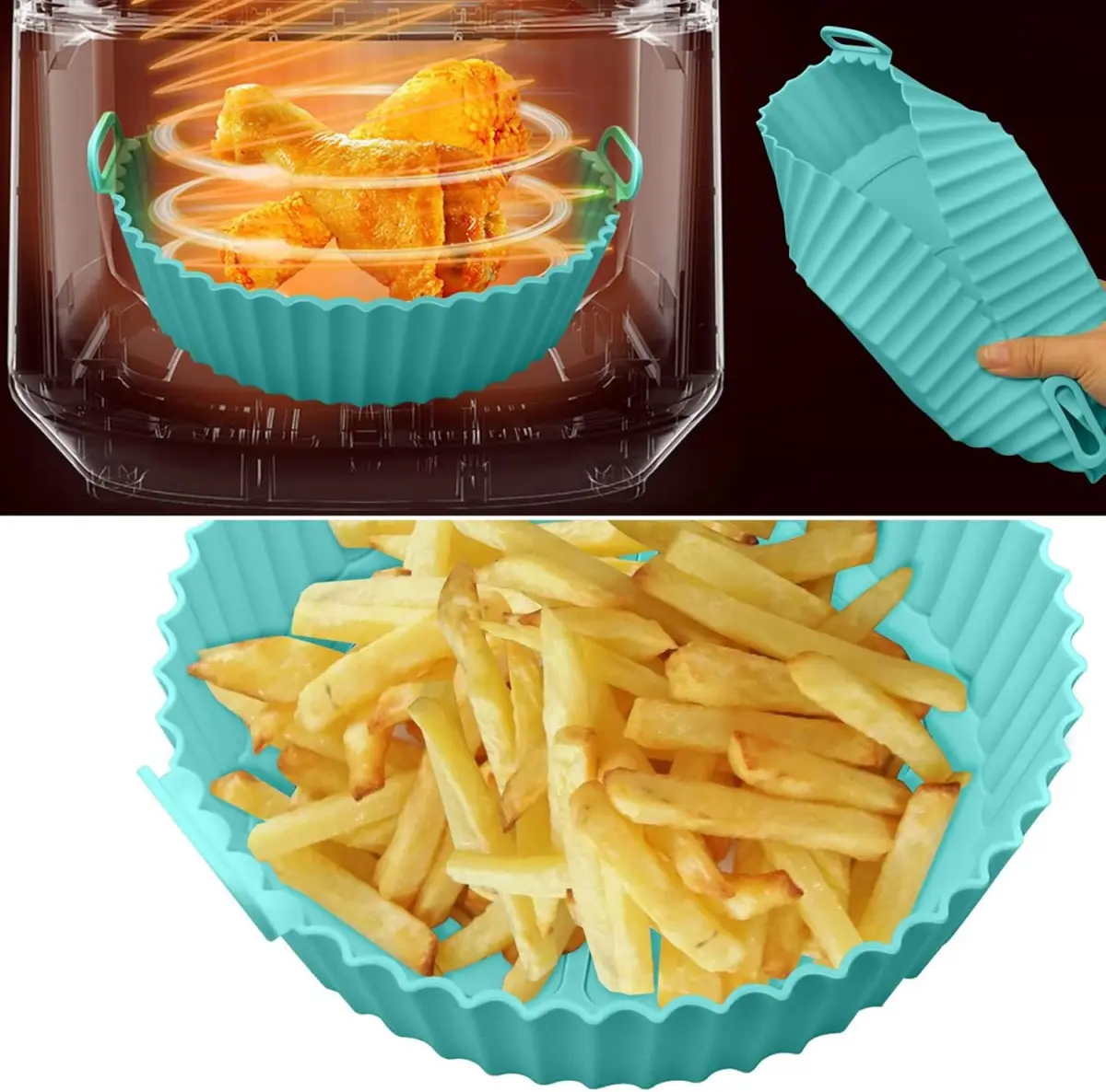 Cociná más práctico y mantené tu airfryer siempre limpia con este recipiente reutilizable de silicona, ideal para preparar todo tipo de comidas sin que se peguen ni dañen la superficie interna. Fabricado en silicona de grado alimenticio resistente hasta 240°C, soporta altas temperaturas y distribuye el calor de manera uniforme.