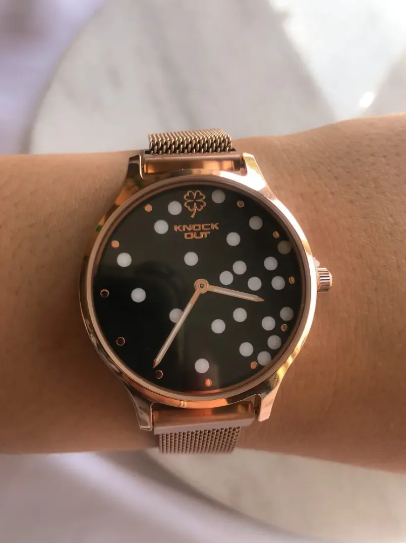 • Malla metálica rose gold: Ajustable y cómoda, aporta un estilo refinado.