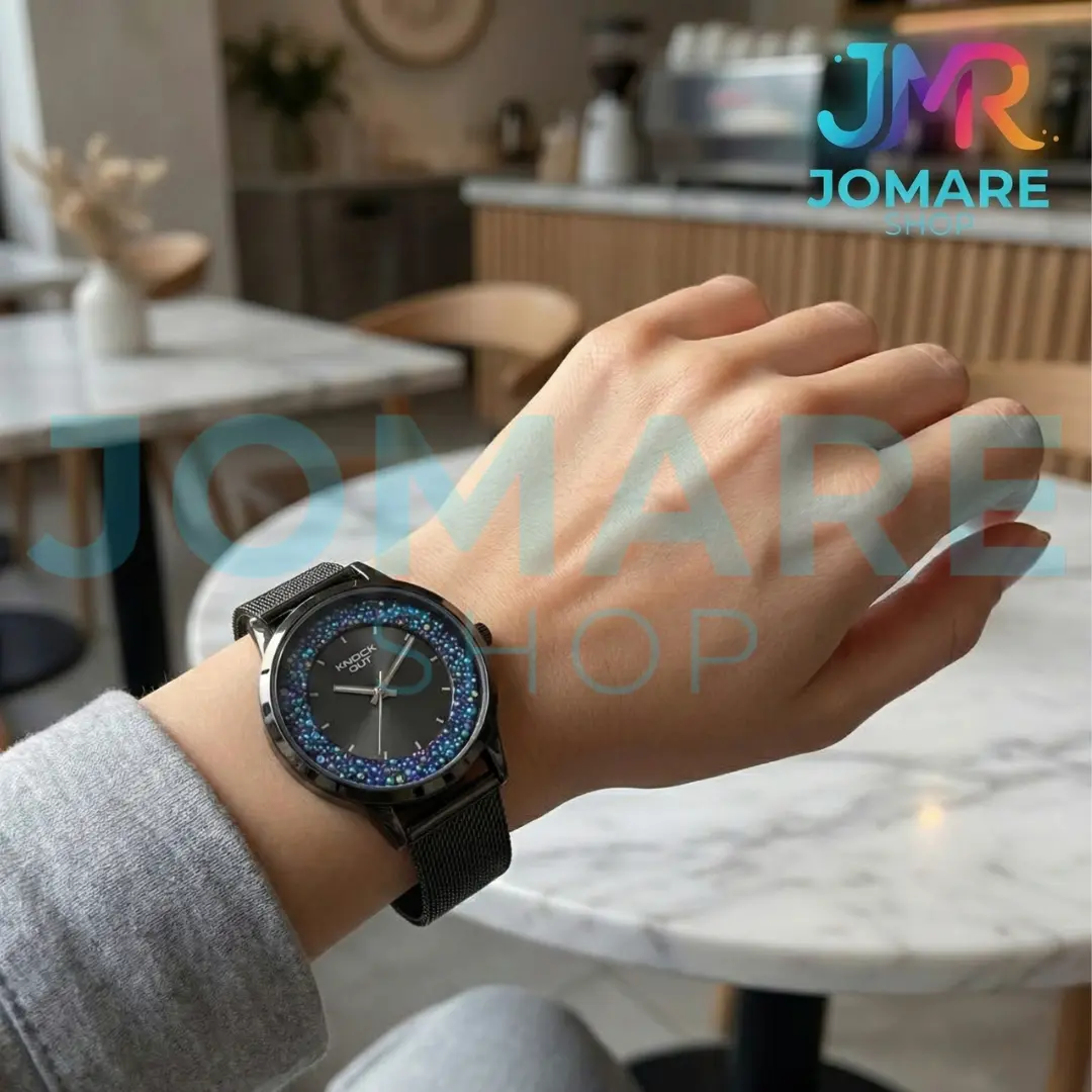 Cuenta con movimiento a cuarzo y pantalla analógica, con agujas de hora, minutos y segundos para una lectura clara y clásica. Su malla metálica tejida de acero, equipada con cierre imantado, permite un ajuste cómodo y práctico, adaptándose fácilmente a la muñeca.
