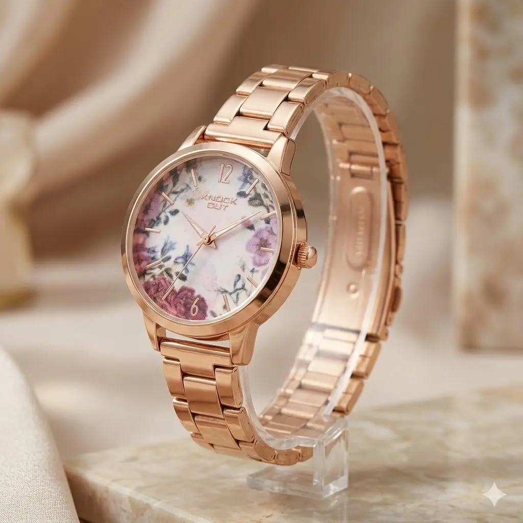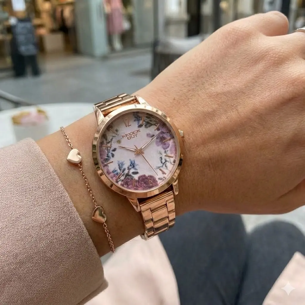 El Reloj Knock Out modelo 2457 es una opción ideal para mujeres que buscan un accesorio elegante, funcional y fácil de combinar. Su malla metálica de acero y su caja en color oro rosa aportan un estilo sofisticado y moderno, perfecto para acompañar tanto looks formales como informales.