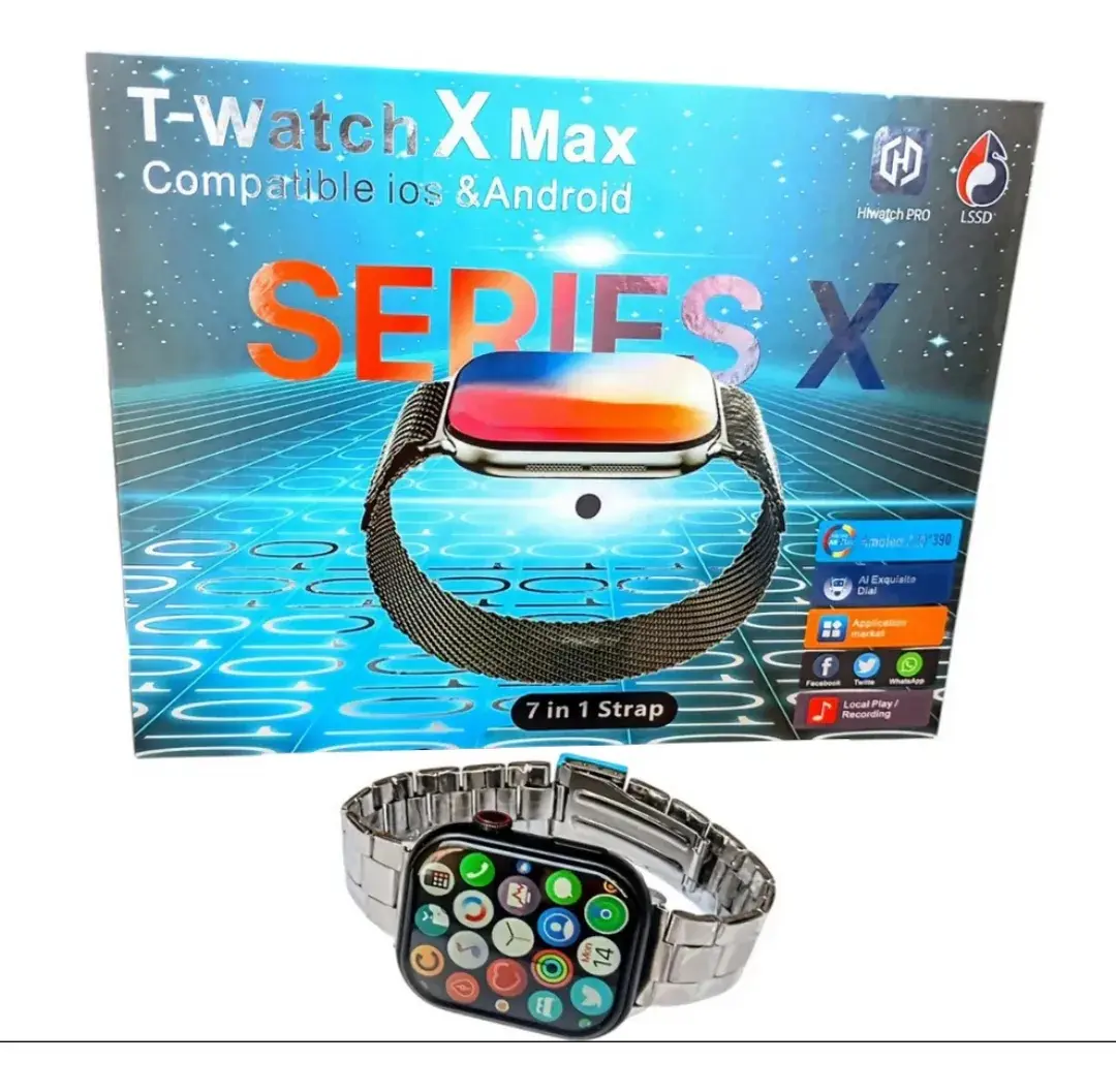 El Smartwatch T-Watch X Max Series X reúne diseño moderno, potencia y funciones inteligentes para acompañarte en un estilo de vida activo y conectado. Su pantalla AMOLED de 320×390 ofrece colores vibrantes y excelente definición, ideal para visualizar notificaciones, métricas de salud y controles multimedia con total claridad.